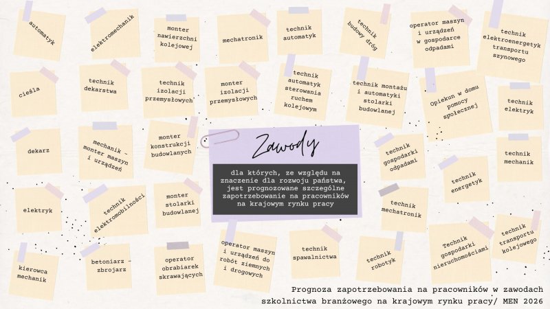 Pod koniec stycznia, jak co roku, opublikowane zostało w MONITORZE POLSKIM Obwieszczenie Ministra Edukacji z dnia 22 stycznia 2026 r. w sprawie prognozy zapotrzebowania na pracowników w zawodach szkolnictwa branżowego na krajowym i wojewódzkim rynku pracy.